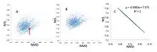 In 2011 Roman Zubarev formulated the isotope resonance hypothesis.[1][2] It originated in the following, unexpected observation. Define ΔMm = Mmono - Mnom, where Mmono is the monoisotopic mass (e.g. O = 15.994915 Da) and Mnom is the nominal (integer) mass, i.e., the number of nucleons (e.g. 16O = 16). ΔMm is a constant in the whole Universe. Define ΔMis = Mav - Mmono, where Mav is the average isotopic mass (e.g. O = 15.999 Da on Earth). Obviously ΔMis depends on the precise isotopic composition for a given molecule. Finally define NMD = 1000ΔMm/Mnom and NIS = 1000ΔMis/Mnom, where NMD [in units of ‰] and NIS [in units of ‰] are the normalized isotopic defect and shift, respectively. If NIS is plotted as a function of NMD for a large number of terrestrial peptides, one would anticipate a homogenous distribution of data points (as in Fig. 1B). This is not what was found by Zubarev’s team,[1] instead they found band gap in the distribution with a narrow line in the middle (Fig. 1A).