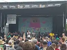 Issues has won two accolades, including the Alternative Press Music Award for Artist of the Year in 2015[3][4] and for Best Bassist the following year, and altogether has been nominated for seven Alternative Press Music Awards.[5] The group was nominated for Best New Talent at the 2014 Revolver Golden Gods. The band has performed at various music festivals including the Vans Warped Tour, the Reading and Leeds Festivals, and Slam Dunk Festival.