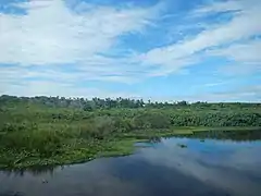 The 3,481 hectares (8,600 acres) Itaúnas State Park, created in 1991, is named after the Itaúnas River, which runs through the park for 34 kilometres (21 mi).[1] The river approaches the coast at the settlement of Itaúnas and then runs southwest, parallel to the coast behind a sand bar, before entering the Atlantic Ocean to the north of Conceição da Barra.[2]