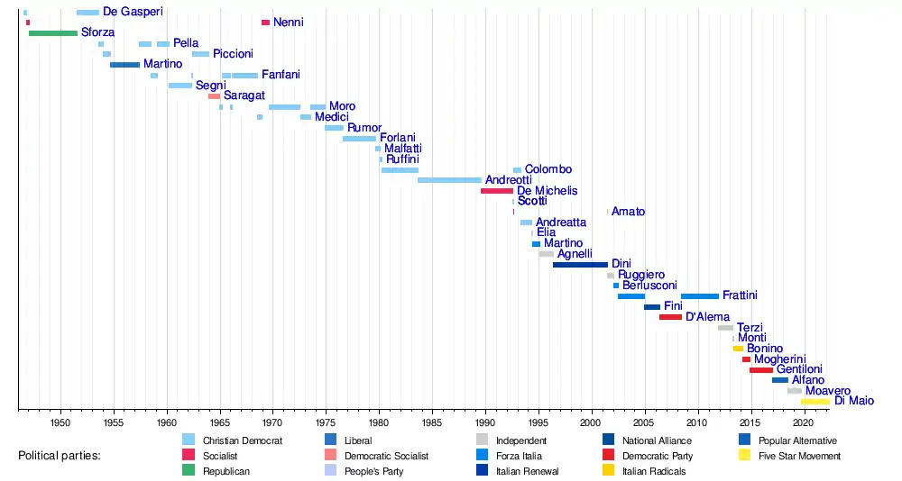 5 September 2019 | Incumbent | 2 years, 239 days | Five Star Movement | Conte II Draghi |
