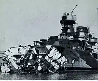 One bomb nearly missed Eugenio di Savoia, but still caused moderate damage to the aft hull, leaving 17 dead and 46 wounded. Repair work from this "near miss" was estimated to take 40 days. Raimondo Montecuccoli was hit midships by a bomb just inside the funnel. Although the funnel was reduced to a smoking crater, the armoured grating was sufficient to protect the vital machinery that lay underneath. Even though Raimondo Montecuccoli could have suffered catastrophic damage had the bomb been able to penetrate further and into more vital compartments; her crew still suffered 44 killed and 36 wounded; and the damage to her funnel and supporting structures was sufficient that she would require seven months of repair, before being returned to active duty. Muzio Attendolo was hit in the midship by one or possibly two bombs, between tower 3 and part of her superstructure, cutting off her main power, and effectively taking her out of the fight.