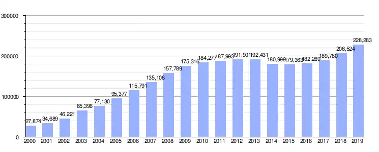 | Population (2000-2019) Foreign population in Spain of Italian nationality according to the Instituto Nacional de Estadística.[1]