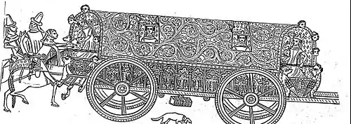 During the course of a year, impressive distances were passed through. Travel speed of the German itinerant court was normally between 20 and 30 kilometres a day.[2] In 1146, Conrad III of Germany could travel as fast as 66 kilometres a day on his journey from Frankfurt to Weinheim.[3]