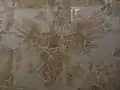 The original area of the banner was 6 m2 (65 sq ft). It was made of white and yellow silk damasks and painted and gilded on both sides.