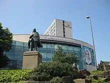 The University of Bradford awarded Priestley the title of honorary Doctor of Letters in 1970 and he was awarded the Freedom of the City of Bradford in 1973. His connections with the city were also marked by the naming of the J. B. Priestley Library at the University of Bradford, which he officially opened in 1975,[16] and by the larger-than-life statue of him, commissioned by the Bradford City Council after his death and which now stands in front of the National Media Museum.[17]