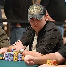 ![]() Kelly playing in the $1,500 Pot-Limit Hold'Em at the 2009 WSOP | |