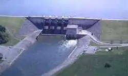 In 1979 the dam was bombed with dynamite as ruse to cover a crime spree supposed to have taken place in the resultant massive flooding. The conspirators succeeded only in destroying some iron doors at the dam's base. The suspects were later convicted and sentenced to substantial prison terms.[3]