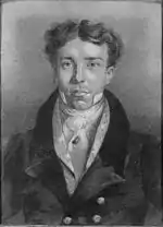 Grimaldi's lack of a steady income eventually led to him being incarcerated in a debtors' prison.[26] Upon his release on 3 March 1831,[26] he moved in with his parents, who again tried to find him employment;[27] their efforts failed because he did not appear for rehearsals.[28] Grimaldi soon reverted to his old ways and often abused his parents' charitable nature by bringing home prostitutes and fighting with his alcoholic friends within the house.[29] He moved out later that year.[30][31]