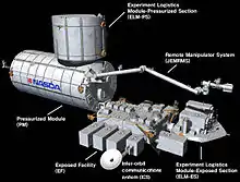 A view of the completed Kibō module of the ISS.