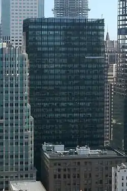 SF Curbed describes the building, designed by Cesar Pelli, as a "circa-2002, 31-story minimalist tower wrapped in black steel."[4] The 31-story building is located at 560 Mission Street.[5] Pelli took visual inspiration from the Hallidie Building.[6]