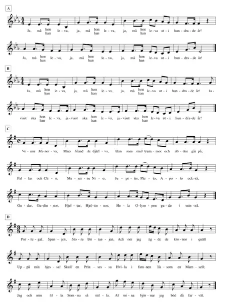 Ex C: "Venus Minerva", Fredman's song no 12 with lyrics by Carl Michael Bellman.[2][3]