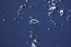 Jabat Island (or Jabot Island or Jabwot Island; Marshallese: Jebat, [tʲɛbˠɑtˠ][1]) is an island in the Pacific Ocean, and forms a legislative district of the Ralik Chain of the Marshall Islands. Its total land area is only 0.6 square kilometres (0.23 sq mi), and has a length of 1.2 kilometres (0.75 mi). It is located 12 kilometres (7.5 mi) from Ailinglapalap Atoll. Unlike most of the other islands in the Marshall Islands, Jabat Island is a rocky island rather than a coral atoll, although it surrounded by fringing shallow water coral reefs that extend for several kilometres beyond the outer reef to the north and south. The population of Jabat Island was 84 in 2011.