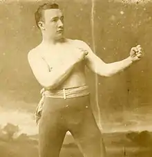 He made his first appearance as an amateur boxer in 1883. He turned professional soon after, fighting Jem Carney 78 rounds to a draw at Revere Beach, Massachusetts. He fought Billy Dacey for the lightweight championship and a $5,000 purse in 1888, and knocked him out in eleven rounds.[2] He was known as a strong two-handed fighter with "cat-like" reflexes. In 1897 he successfully defended his title against Billy Myer in a highly publicized match at the Olympic Club, New Orleans .