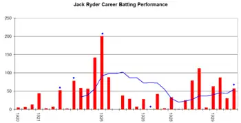 He remains the only Test cricketer to be run out in both innings of his debut Test match.[1] Ryder was also the first Australian to complete a Test Career of more than 20 innings with a batting average over 50.00.