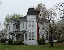 The Jackson–Herget House is a historic house at 206 South 4th Street in Paragould, Arkansas. It is a 2+1⁄2-story wood-frame structure, clad in aluminum siding. It has asymmetrical massing typical of the Queen Anne period, with a variety of gables, projecting sections, porches, and a three-story tower topped with a steeply pitched hip roof and wrought iron railing. It is one of the finest Queen Anne houses in Greene County, despite the aluminum siding, which was added in such a way to match the earlier clapboarding and without destroying some of the trim. The house is further notable as the home of Richard Jackson, one of Paragould's leading businessmen and civic boosters.[2]