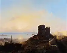 Still, he was dissatisfied with what he had seen so, in 1838, he left on a long sea voyage that would take him to Gibraltar, the North African coast, Egypt, the Dardanelles, Istanbul (where he remained for several months), Asiatic Turkey and Rhodes.[1] While in Ankara, he met and befriended his fellow Belgian painter, Florent Mols, and they continued travelling together; sailing down the Nile as far as Nubia. During these travels, he compiled two huge albums of drawings and notes that he would use for inspiration the rest of his life. In 1847, still restless, he toured Northern Germany and, in 1850, Scandinavia.