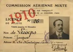 In 1910, Jacques de Lesseps became the second person to fly an aeroplane over the English Channel. His aircraft was a Blériot Type XI like the one Louis Blériot himself used for the first Channel crossing the year before.[1]