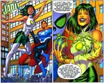 As part of the JLA, Jade played a major role in ending the Saturn-Thanagar War by channeling the Starheart's power to magnify the telepathic abilities of the new colonists of Titan to compel the Thanagaran fleet to leave.