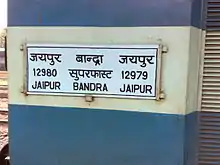 - "12980/Jaipur - Bandra Terminus Superfast Express". India Rail Info.