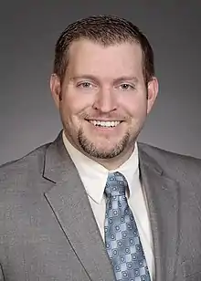 Jake Chapman (born 1984) is the Iowa State Senator from the 10th District.[1] A Republican, he has served in the Iowa Senate since being elected in 2012 to a seat that had no incumbent due to redistricting.[2] At the age of 28, Chapman won the election and served as the youngest State Senator in the 85th General Assembly.[3]