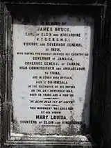 James Bruce became Governor of Jamaica in 1842,[5] During an administration of four years he succeeded in winning the respect of all. He improved the condition of the Afro-Caribbean workers, and conciliated the white planters by working through them.[6]
