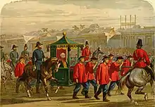 James Bruce, 8th Earl of Elgin and 12th Earl of Kincardine, KT, GCB, KCSI, PC, FSA Scot (20 July 1811 – 20 November 1863) was a British colonial administrator and diplomat. He served as Governor of Jamaica (1842–1846), Governor General of the Province of Canada (1847–1854), and Viceroy of India (1862–1863).[1] In 1857, he was appointed High Commissioner and Plenipotentiary in China and the Far East to assist in the process of opening up China and Japan to Western trade. In 1860, during the Second Opium War in China, he ordered the destruction of the Old Summer Palace in Beijing, an architectural wonder with immeasurable collections of artworks and historic antiques, inflicting incalculable loss of cultural heritage.[2] Subsequently, he compelled the Qing dynasty to sign the Convention of Peking, adding Kowloon Peninsula to the British crown colony of Hong Kong.