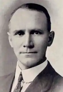 James E. Rieger was born September 20, 1870 in Peoria County, Illinois, to German immigrant parents Gottfried and Rose (Bruning) Rieger.[2] He was the middle child of eight children, the others being Philip Joseph Rieger (1859–1924), Anne Rieger (1861–), John Rieger (1863–1947), Sarah Rieger (1864–1937), Salome (1870–), Christian "Christopher" Rieger (1872–1881) and George Rieger (1875–1944).[3] In 1880 the Rieger family moved to Kirksville, Missouri where James' father intended to continue his vocation as a coopersmith and farmer. However in July 1881 Gottfried Rieger died followed by his son Christopher in September, 1881. James Rieger received his primary and secondary education in Peoria and the rural schools of Adair County, Missouri before matriculating at the First District Normal School (now Truman State University) in Kirksville. Thereafter he worked as a public school teacher for two years.[1] Rieger then continued his higher education at the University of Missouri in Columbia, Missouri where he earned his law degree in 1897.[1] After passing the Missouri Bar he returned to Kirksville and established a private law practice in 1898. James Rieger served as Adair County Prosecuting attorney from 1909 to 1911.[1] He also held various other elected and politically appointed positions, including City Clerk for Kirksville, chairman of the county Democratic committee, and vice-president of the school board.