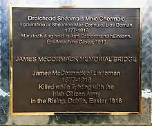 A native of the Dardistown, Lisdornan and the Bellewstown area, Meath County Council and The Bellewstown Heritage Group unveiled a Commemoration Plaque to James McCormack on the Lisdornan/Dardistown boundary exactly 100 years to the day he was shot, newly named James McCormack Memorial Bridge.