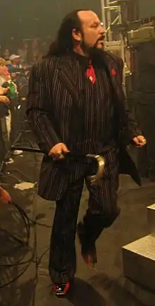 At Genesis in 2006, Abyss won his first NWA World Heavyweight Championship by defeating Sting.[8] The weeks after Abyss's title reign Sting seemed to control Abyss, and he ordered Abyss to come to the ring alone where he would speak to Abyss without Mitchell speaking in Abyss's ear. Mitchell nearly lost control of Abyss, however soon scared him straight by showing Abyss a prison. Mitchell slammed Abyss into the fence and slapped him and reminded Abyss about his past. This act let Mitchell once again control Abyss with both men going into Final Resolution as a unit, manager and wrestler, to help Abyss defend his title against Sting and Christian Cage. On January 14, 2007, at Final Resolution Abyss lost his World Heavyweight Championship to Christian Cage during a Three Way Elimination match against Sting and Christian Cage. Abyss was eliminated by Sting after a Scorpion Death Drop, and then Sting by Christian Cage. The following week, Mitchell was later attacked and kidnapped by Sting, who threw him into the trunk of his car, and told Mitchell to leave Abyss alone. On January 25, he was able to give Sting by payback by launching a fireball right into Sting's face. The week after that, he told Abyss to find Sting while he later came into the ring and told Sting if he would accept his challenge at Against All Odds pay-per-view and on February 8, he accepted. He was then "kidnapped" by Sting again only this time, he was locked up in a cage, until Abyss came to his rescue by attacking Sting while Mitchell grab his belt buckle and choked Sting with it. At Against All Odds on February 11, Abyss lost to Sting in a prison yard match after he was powerbombed by Sting into a barbed wired table.