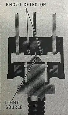 https://www.youtube.com/watch?v=lEIe7tkjVqQ - US Patent 3304431, Biard, James R., "Photosensitive Transistor Chopper Using Light Emissive Diode", Filed: Nov. 29, 1963, Issued: Feb. 14, 1967.