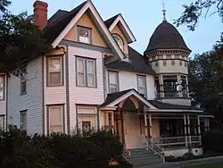 It is an imposing Late Victorian- and Victorian Eclectic-style house. Queen Anne elements are its massing, its gazebo-like porch tower, its irregular roof, and corbelled chimneys. Eastlake details include machine-turned columns of its porches and interior staircase.[2]