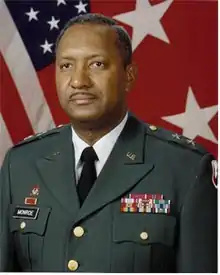 Monroe graduated from West Virginia State College in 1963 with a bachelor's degree in Electrical Engineering and a commission as a Distinguished Military Graduate from the school's Reserve Officer Training Corps Program (ROTC). He also holds a master's degree in Political Science from the University of Cincinnati. His military education includes the Ordnance Officer Basic and Advanced Course, Armor Officer Basic Course, U.S. Army Command and General Staff College, and the Industrial College of the Armed Forces.[1]
