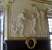 A magnificent example of his work are the decorations for Modave Castle. The grand vestibule of this castle is decorated with a genealogical tree of the house of the Counts of Marchin, including the coats of arms of the members of the family but also reliefs depicting some ancestors as knights in full armour on their horses. A series of rooms on the ground floor is decorated with scenes from the life of Hercules, while the apartment on the first floor follows the theme of the four seasons.