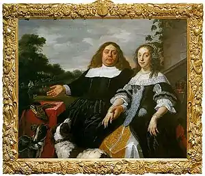 ![]() Jan J. Hinlopen in 1666, with his new wife Lucia Wijbrants. Painting by Bartholomeus van der Helst, now in a private collection | |