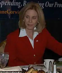 Jane Lewis Corwin (born February 29, 1964)[1] is an American politician and businesswoman who currently serves a Commissioner of the International Joint Commission for United States and Canada. She previously served as a Republican Party member of the New York State Assembly from 2009 to 2016. She represented the 144th Assembly District which covers parts of Erie and Niagara counties. Corwin was also the Republican Party nominee in the special election held on May 24, 2011, to fill Western New York's 26th district seat in the U.S. House of Representatives previously held by Republican Chris Lee. She faced three other candidates in the election; losing to Democrat Kathy Hochul 47 percent to 42 percent.[6]