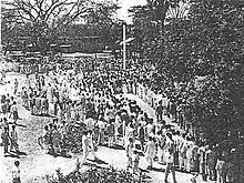 The Naxalite movement of was named after the village of Naxalbari in West Bengal where it started.[7] In West Bengal on 2 March 1967, a United Front Government was formed by the Communist Party of India (Marxist).[8] On 18 March 1967, Santhal was part of a Peasants' Council in the Darjeeling district that resolved to re-distribute the land to the sharecroppers and prepare for an armed struggle against landlords. This council was in response to the United Front Government's formation, which the participants of the peasant's council saw as too moderate and a betrayal of the party vision.[8] This led to peasants across the area gradually rising up against their oppressive landlords and establishing their own revolutionary committees, thereby giving themselves political power. By May 1967, it is estimated that they could have been able to control the Phansidewa, Kharibari, and Naxalbari regions of the Darjeeling district.[8] The rebellion came to a head when a young sharecropper of the Naxalbari region was attacked by men sent by his landlord on 2 March. The response to this was that sharecroppers and peasants across the region started violently and forcibly take back their land; Jangal Santhal the primary leader and organizer of this uprising.[8] When a police party headed by inspector Sonam Wangdi arrived to arrest some peasant leaders, they were ambushed by Santhal's group armed with bows and arrows. In the ensuing conflict nine members of Sangal's group were killed and Sonam Wangdi and two other officers were injured in the attack. Wangdi died two days later.[8] On 25 May 1967, the police, in an act of retaliation, fired on a large crowd and ended up killing ten people, seven of which were women and two who were children.[9] The CPI (M) after much deliberation denounced the violence in Naxalbari, from both the peasants and the police, and ordered extensive police action in Naxalbari to stop the revolt. The extensive police operations began on 12 July, and the United Front Government stamped out the rebellion after 72 days.[8] This included the barring of Jangal Santhal's family from working in order to stop them from providing for themselves so they may starve.[10] Santhal was arrested in at some point that same year[8] and was released in 1969.[10]