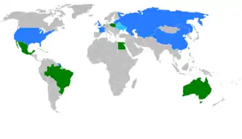 This resulted in the election of Brazil, Egypt, Mexico, the Netherlands, and Poland to the Council, all of them having achieved the requisite two-thirds majority of 34 votes. One seat remained to be filled, and the rules required for that one nation to be elected from the two most successful candidates not elected; that is, Australia or Canada. This was to be decided upon in a second vote.