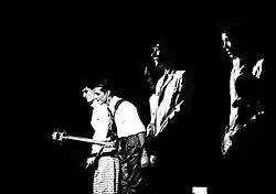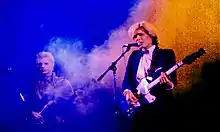 The band, who were initially nameless, opted to call themselves Japan. The name was intended by Sylvian to be temporary until they could think of something else, but ultimately became permanent.[8] The following year they were joined by another school friend Richard Barbieri on keyboards and later by lead guitarist Rob Dean, and signed a management deal with Simon Napier-Bell in 1976. After winning a label-sponsored talent contest the band signed a recording contract with the German disco label Hansa-Ariola in 1977, becoming an alternative glam rock outfit in the mould of Lou Reed, David Bowie, T.Rex, Roxy Music, and New York Dolls although their initial material was guitar-based funk.[9]