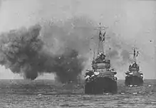 The Shiratsuyu-class destroyers were modified versions of the Hatsuharu class, and were designed to accompany the Japanese main striking force and to conduct both day and night torpedo attacks against the United States Navy as it advanced across the Pacific Ocean; according to Japanese naval strategic projections.[3] Despite being one of the most powerful classes of destroyers in the world at the time of their completion, none survived the Pacific War.[4] Samidare, built at the Uraga Dock Company was laid down on 19 December 1934, launched on 6 July 1935 and commissioned on 19 January 1937.[5]