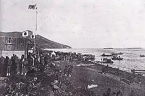 The Japanese force commenced landing operations on 7 July 1905, with the main force landing between Aniva and Korsakov without opposition, and a second landing party nearer to Korsakov itself, where it destroyed a battery of field artillery after short combat.[1] The Japanese moved on to occupy Korsakov on 8 July, which was set on fire by the retreating Russian garrison after having been defended for 17 hours by 2,000 men led by Colonel Josef Arciszewski. The Japanese moved north, taking the village of Vladimirovka (present-day Yuzhno-Sakhalinsk) on 10 July, the same day that a new Japanese detachment landed at Cape Notoro.[1] Colonel Arciszewski dug in to resist the Japanese, but was outflanked and forced to flee into the mountainous interior of the island. He surrendered with his remaining men on 16 July. About 200 Russians were captured while the Japanese suffered 18 dead and 58 wounded.