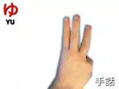 The Japanese Sign Language syllabary (指文字, yubimoji, literally "finger letters") is a system of manual kana used as part of Japanese Sign Language (JSL). It is a signary of 45 signs and 4 diacritics representing the phonetic syllables of the Japanese language. Signs are distinguished both in the direction they point, and in whether the palm faces the viewer or the signer. For example, the manual syllables na, ni, ha are all made with the first two fingers of the hand extended straight, but for na the fingers point down, for ni across the body, and for ha toward the viewer. The signs for te and ho are both an open flat hand, but in te the palm faces the viewer, and in ho it faces away.