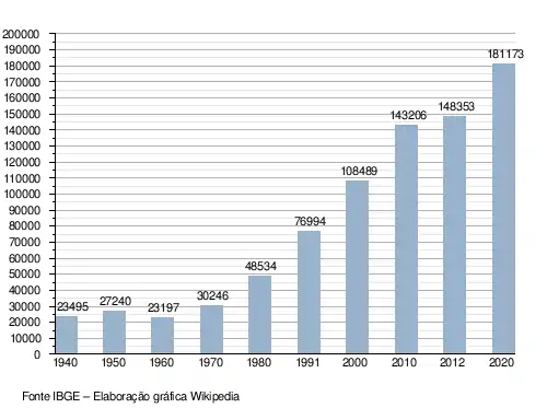 The first inhabitants of the city were the indigenous people of the Xokleng and the Kaingang.[5] Later the following ethnic groups immigrated to the city: Germans, Hungarians, Italians, Poles, and Africans, who were brought to the city as slaves.[6] By 2002 City Hall research concluded that 45% of the people from Jaraguá do Sul are descended from Germans. The other main groups were Italians (25%), Poles (6%), and Hungarians (3%); 21% had other ancestry.[33]
