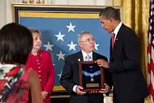 On July 24, 2009, President Barack Obama signed the authorization for Monti to receive the Medal of Honor for this action. The medal was presented to the family by the President in a formal ceremony at the White House on September 17, 2009.[5] Monti is the 3,448th recipient of the honor since the medal was established by the U.S. Congress during the American Civil War.[12] Additionally, he is the second Medal of Honor recipient from the conflict in Afghanistan, after Navy SEAL Michael P. Murphy, who received the medal in 2007.[1]