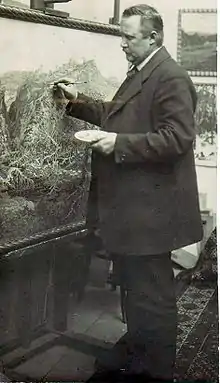 Born in 1872 in Hořovice, Jaroslav Panuška was the son of a land surveyor.[1] He studied art in Prague under Julius Mařák, becoming one of the leading representatives of his school.[2] During the 1890's he was particularly prominent among Prague artists,[3] and is mostly known for his disturbing treatment of themes related to death, loneliness and the supernatural.[4]