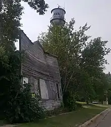 From 1908-1909, the railroad company rerouted its track, passing north of the town by one-half mile. The citizens received a proposal from railroad officials to move the town north, however, this proposal was refused, and the town was served thereafter by a spur line constructed by the company.[7]