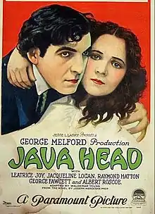Java Head is a 1923 American silent romantic drama film directed by George Melford and starring Leatrice Joy, Jacqueline Logan, Frederick Strong, Alan Roscoe, and Betty Bronson in a bit part. It is based on a popular novel of the same name by Joseph Hergesheimer,[1] which in turn is named after the geographical feature.