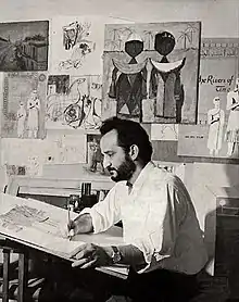 Jewad Selim (1919–1961) (Arabic: جواد سليم) was an Iraqi painter and sculptor[1] born in Ankara, Ottoman Empire in 1919.[2] He became an influential artist through his involvement with the Iraqi Baghdad Modern Art Group, which encouraged artists to explore techniques that combined both Arab heritage and modern art forms. He is considered to be one of Iraq's greatest 20th-century sculptors.