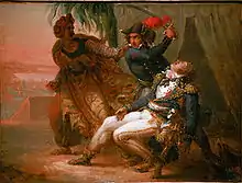 When Napoleon returned to France towards the end of 1799, he left Kléber in command of the French forces.[3] In this capacity, seeing no hope of bringing his army back to France or of consolidating his conquests, he negotiated the Convention of El-Arish (24 January 1800) with Commodore Sidney Smith, winning the right to an honorable evacuation of the French army.[3] When Admiral Lord Keith refused to ratify the terms, Kléber attacked the Turks at the Battle of Heliopolis.[3] Although he had only 10,000 men against 60,000 Turks, Kléber's forces utterly defeated the Turks on 20 March 1800. He then re-took Cairo, which had revolted against French rule.[2]