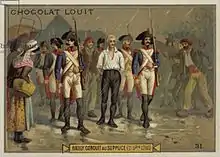 In July 1793, Bailly left Nantes to join his friend Pierre Simon Laplace at Melun, but was recognised there and arrested. On 14 October, he was pressed to testify against Marie Antoinette but refused. On 10 November 1793, he was brought before the Revolutionary Tribunal in Paris, speedily tried, and sentenced to death the next day. On 12 November 1793, he was guillotined at Champ de Mars, a site selected symbolically as the location of his betrayal of the democratic movement. The little red flag he had used to give the order to fire on the crowds on the Champs de Mars was tied to the cart that took him to his death, and burned in front of him before he was executed.[14] It was the revival of this event after 10 August in 1793 along with the persecution of Marat that led to the death of Bailly.[13]: 213 He was forced to endure the freezing rain and the insults of a howling mob. When a scoffer shouted, "Tu trembles, Bailly?" ("Do you tremble, Bailly?"), he responded, "Oui, mais c'est seulement de froid" ("Yes, but it is only the cold").