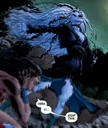 In her first appearance several centuries later, Jeannette is shown to run a casino in Las Vegas, Nevada.[2] Her status as a villain was not made explicit, but due to her apparent relationship with her soon-to-be teammate Scandal Savage, it is implied that she had engaged in some unsavory business prior to her introduction. Eventually, she is shown to have been detained in several prisons over the course of her long life for unspecified crimes.[3]